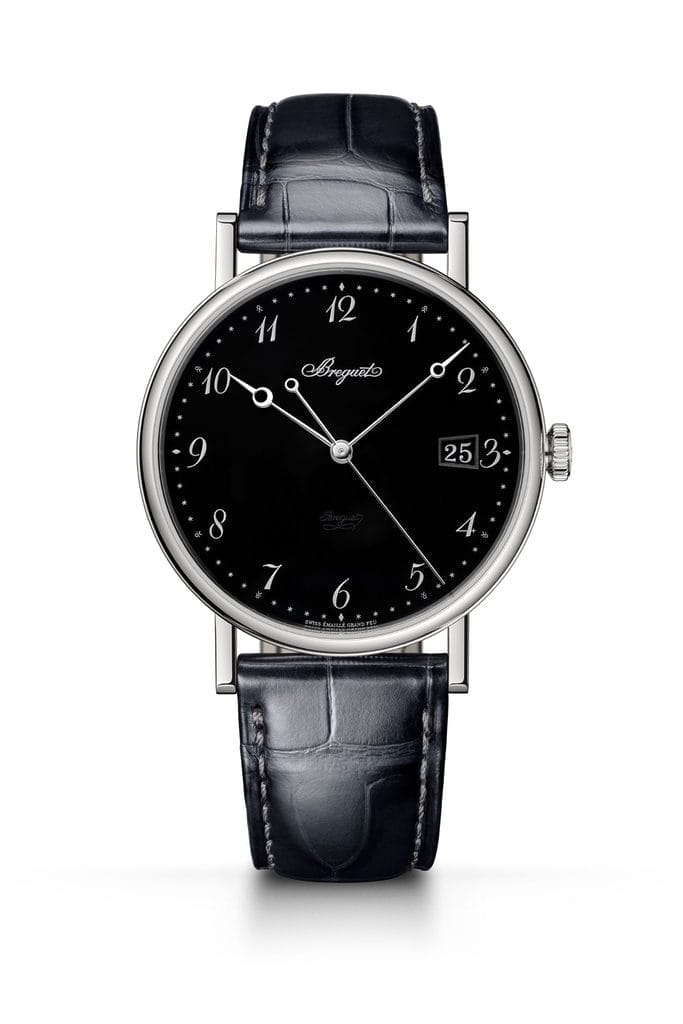 Les nouveaux modèles de la collection, nappés d’un émail noir intense, présentent des cadrans lisses et uniformes, ornés de chiffres arabes Breguet et d’une discrète minuterie argentée. Les aiguilles Breguet, rhodiées et en forme de pomme évidée, indiquent les heures, minutes et secondes. Les cadrans révèlent la signature secrète de Breguet, située de manière spécifique selon les modèles.