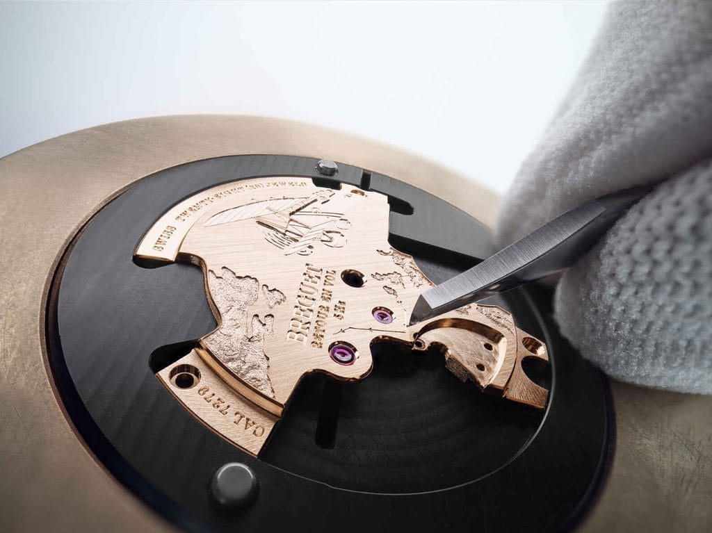 Dans les deux cas, on retrouve des chiffres arabes, aiguilles et appliques en or Breguet 18K, ainsi qu’un discret marquage “Al” ou “Ag925” entre 7h et 8h selon la matière du cadran. Le tout est protégé par un verre saphir doublement traité antireflet.