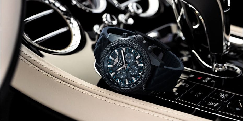 Silhouette redessinée dans un style encore plus sportif et musclé, nouveau moteur W12 TSI de 6 l optimisé, équipement de bord intégrant les toutes dernières technologies, habitacle raffiné façonné à la main: avec la troisième génération de Continental GT, présentée au salon de Francfort 2017, Bentley redéfinit la quintessence du Grand Tourisme en mariant plus que jamais luxe et performances. Breitling for Bentley marque l’événement en lançant une édition limitée reflétant tout l’esprit de cette nouvelle championne de la route. Le boîtier ultraléger et ultrarobuste est fabriqué en Breitlight®, un matériau high-tech exclusif à Breitling se distinguant par ses qualités hors pair (résistance aux rayures, à la traction et à la corrosion, amagnétisme, stabilité thermique, caractère anallergique). Sa teinte noire légèrement marbrée se pare de reflets bleutés rappelant la couleur de carrosserie Bentley «Dark Sapphire». Le cadran arbore un décor en losanges reprenant un motif introduit sur la nouvelle Continental GT en plusieurs endroits de l’habitacle et des organes de commande.
