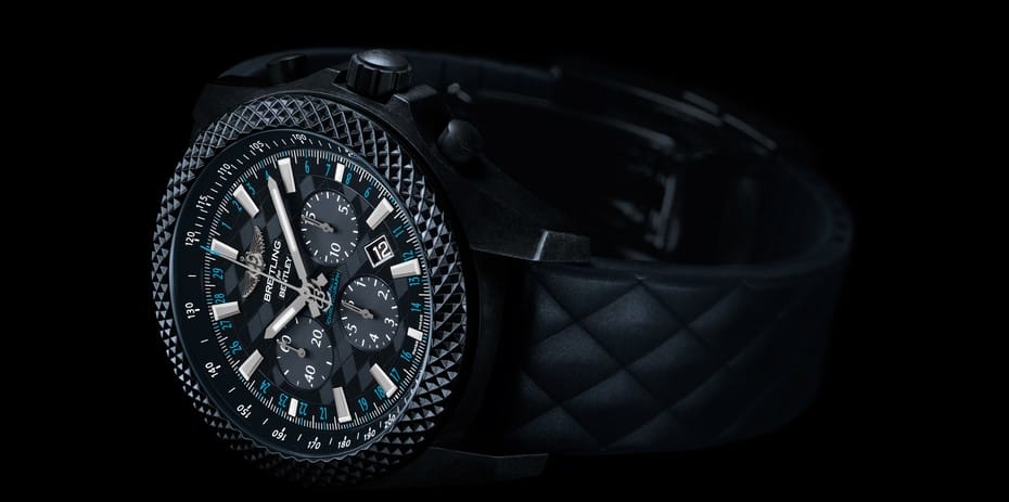 Silhouette redessinée dans un style encore plus sportif et musclé, nouveau moteur W12 TSI de 6 l optimisé, équipement de bord intégrant les toutes dernières technologies, habitacle raffiné façonné à la main: avec la troisième génération de Continental GT, présentée au salon de Francfort 2017, Bentley redéfinit la quintessence du Grand Tourisme en mariant plus que jamais luxe et performances. Breitling for Bentley marque l’événement en lançant une édition limitée reflétant tout l’esprit de cette nouvelle championne de la route. Le boîtier ultraléger et ultrarobuste est fabriqué en Breitlight®, un matériau high-tech exclusif à Breitling se distinguant par ses qualités hors pair (résistance aux rayures, à la traction et à la corrosion, amagnétisme, stabilité thermique, caractère anallergique). Sa teinte noire légèrement marbrée se pare de reflets bleutés rappelant la couleur de carrosserie Bentley «Dark Sapphire». Le cadran arbore un décor en losanges reprenant un motif introduit sur la nouvelle Continental GT en plusieurs endroits de l’habitacle et des organes de commande.