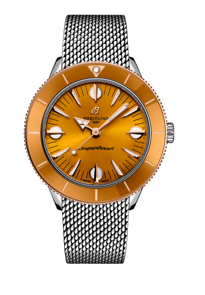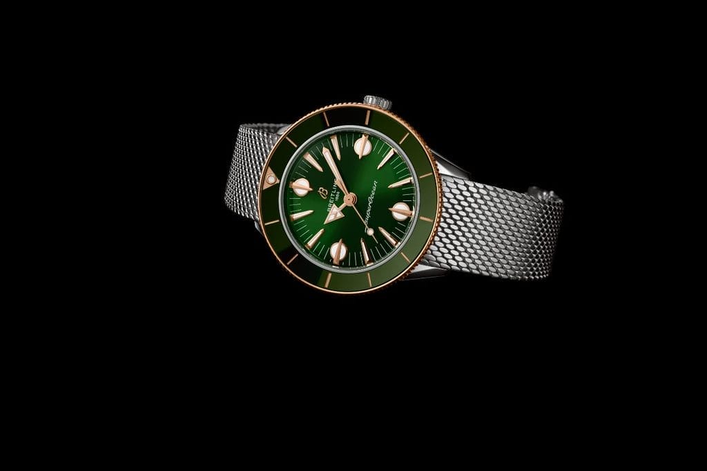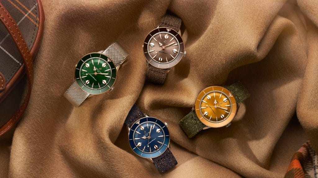 En tant que collection capsule, la gamme compte un volume restreint, disponible pour une durée limitée. Chaque pièce, d’un diamètre de 38 mm, présente des cadrans aux couleurs vibrantes inspirées par la terre et la mer : beige, vert, moutarde et bleu. Comme leur prédécesseur, le modèle SuperOcean, elles sont dotées d’index triangulaires inspirés du milieu du siècle dernier, indiquant les heures.