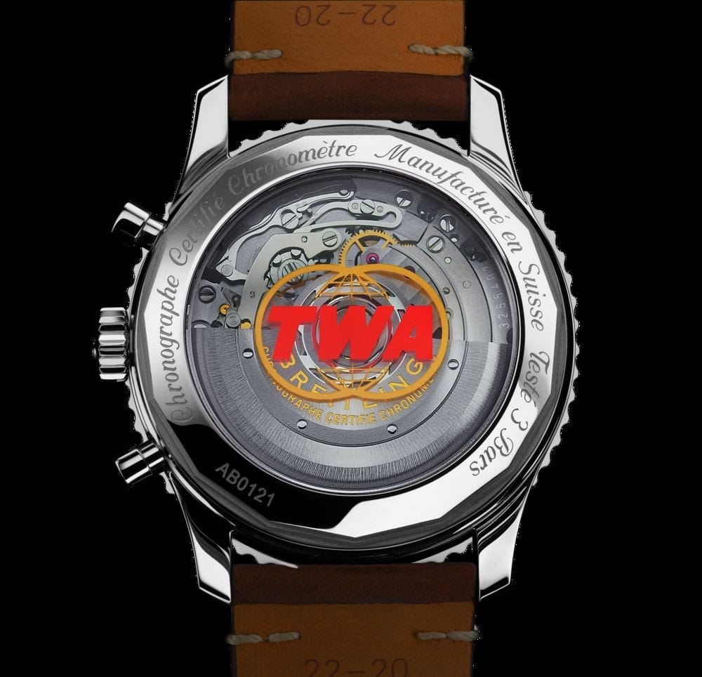La Navitimer 1 B01 Chronographe 43 TWA Edition est dotée d’un fond transparent en verre saphir avec impression du logo TWA. La compagnie Trans World Airlines, localisée aux Etats-Unis, était visible dans tous les grands aéroports du monde pendant presque tout le XXe siècle. Cette montre en acier inoxydable est dotée d’un cadran argent, de sous-cadrans anthracite et d’un bracelet en cuir brun d’inspiration vintage ou d’un bracelet en maille métallique inoxydable. Et, comme les autres éditions de la collection capsule qui honorent Swissair et Pan Am, cette nouvelle venue commémore l’une des compagnies aériennes qui jouèrent un rôle très important dans l’émergence du vol commercial au cours du XXe siècle et qui contribuèrent largement au succès de l’aviation de transport de passagers telle que nous la connaissons aujourd’hui.
