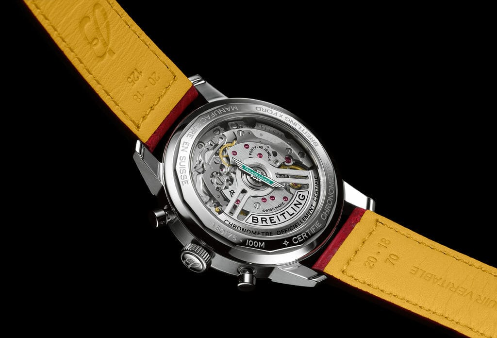 La nouvelle collection Classic Cars comprend désormais le modèle Ford Thunderbird, doté d’un bracelet rouge et d’un cadran blanc épuré qui attire le regard vers le logo bleu sarcelle de Thunderbird et les aiguilles rouges du chronographe. Les quatre montres arborent les couleurs et les emblèmes de leurs voitures de sport des années 1950 et 1960, et sont toutes dotées d’un nouveau moteur digne de ce nom : le Calibre Manufacture Breitling 01.