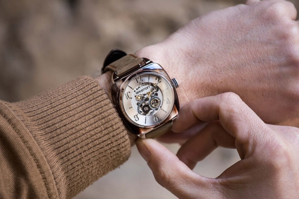 Enfin, BRISTON a choisi de présenter la Streamliner Squelette sur des bracelets deux brins en cuir vintage. Spécialement développés par BRISTON, ils sont dotés d’un système de ressorts qui permet de changer de bracelet & de garder cette interchangeabilité si chère à la marque.