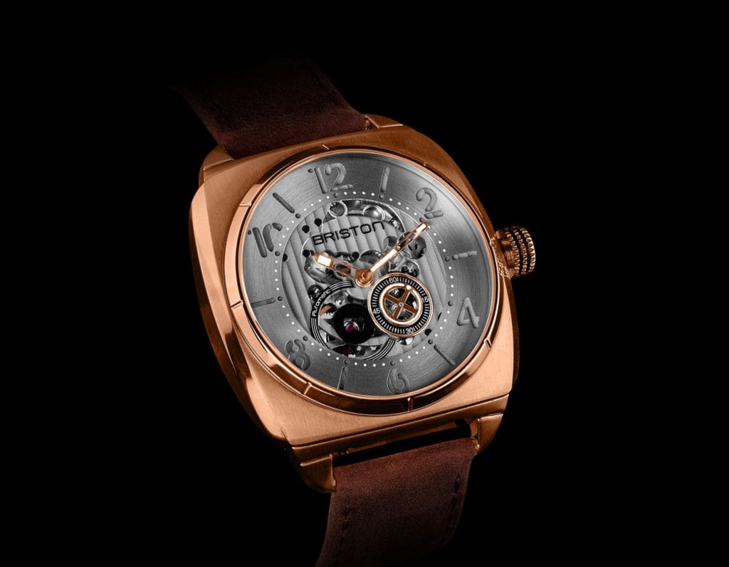 BRISTON remonte le temps et s’inspire du mouvement américain Streamline, créé dans les années 1930 et qui a fait du design moderne sa signature. Prenant racine dans l’Art Déco, le Streamline Moderne s’en détache néanmoins en proposant des lignes plus douces et plus sensuelles. Ce sont ces courbes, la force de ces arcs qui dessinent le nouveau boitier 42x42mm de la marque horlogère, tout en courbes tendues.