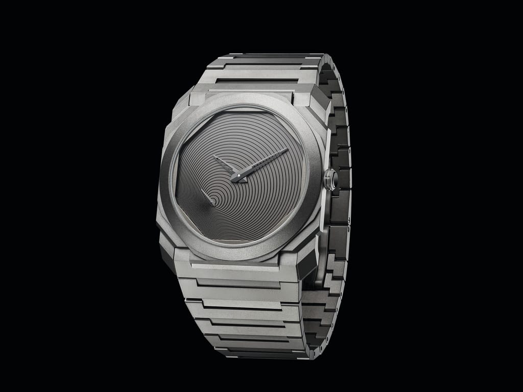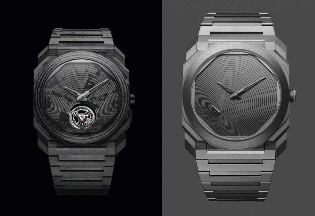 C’est avec cette approche que l’édition limitée « Octo Finissmo Tadao Ando » a été développée. La première des deux interprétations, l’Octo Finissimo Titane, est éditée dans une série limitée à 200 pièces. Son cadran, dessiné par l’architecte, figure une spirale trouvant son origine à la base de l’aiguille des secondes et évoque le passage infini du temps. La seconde, l’Octo Finissimo Tourbillon Carbone, est réalisée quant à elle dans une série limitée à 8 exemplaires. Ici encore, le maître s’inspire de l’inéluctable spirale du temps, dont les cercles concentriques partent du Tourbillon pour rayonner sur tout le cadran.
