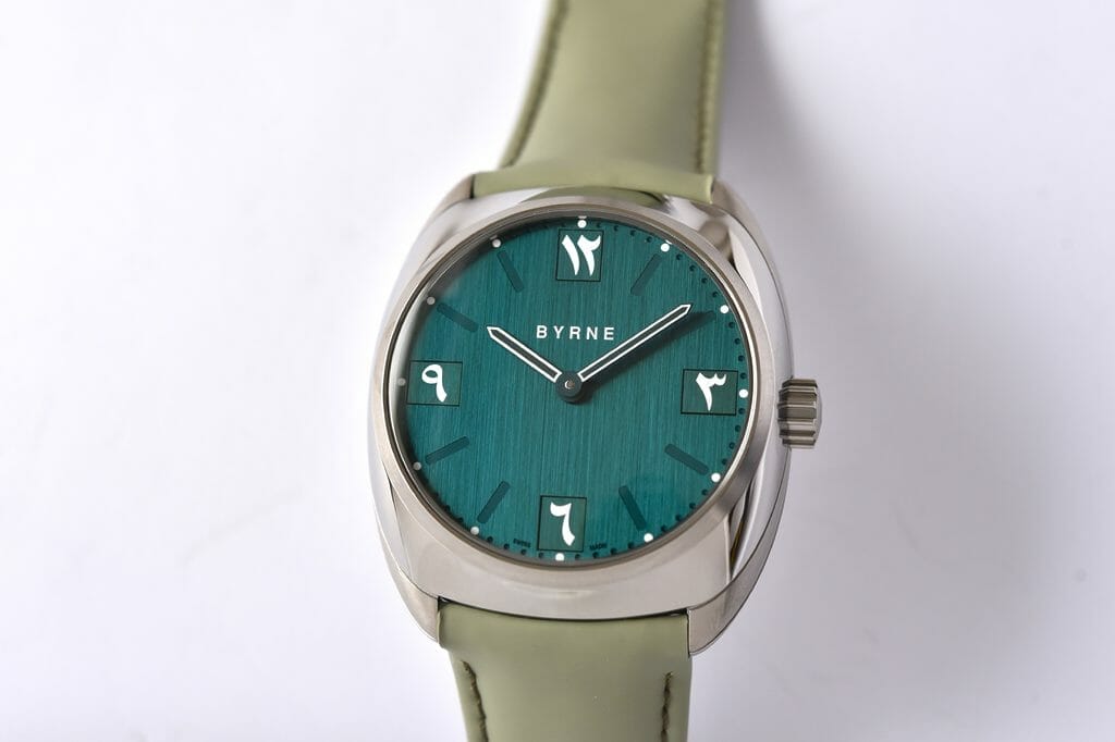 En ce printemps 2023, BYRNE WATCH propose une série limitée avec des chiffres indo-arabes sur un hypnotique cadran vert aux reflets multiples : la GyroDial Indoarabe.