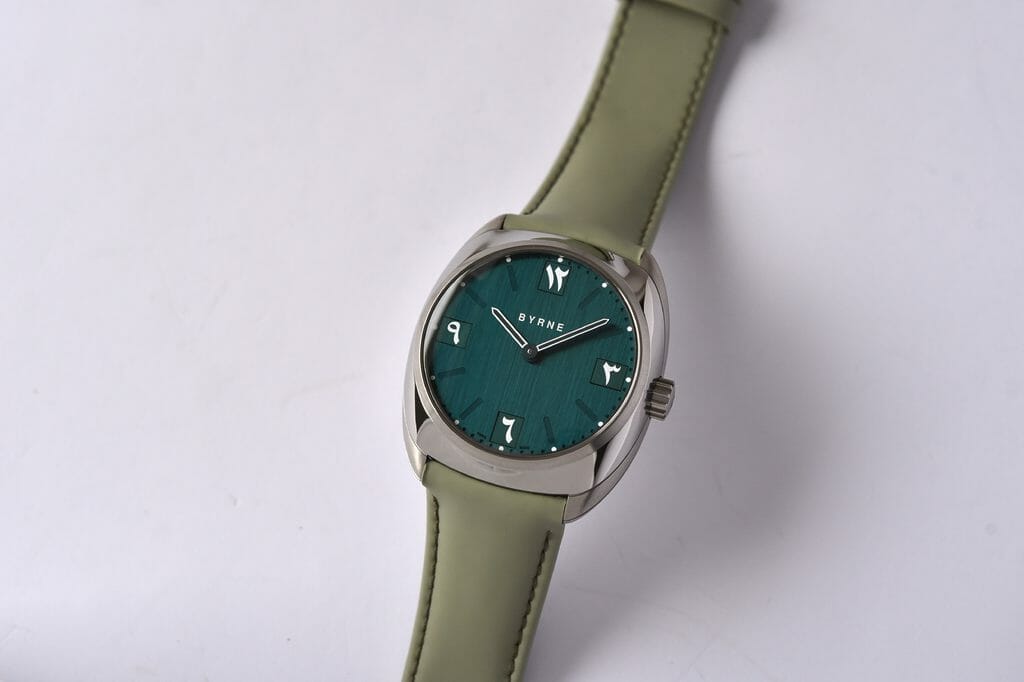 En ce printemps 2023, BYRNE WATCH propose une série limitée avec des chiffres indo-arabes sur un hypnotique cadran vert aux reflets multiples : la GyroDial Indoarabe.