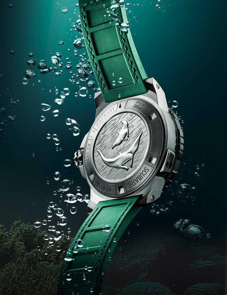 Capable d’accompagner les plongeurs sous l’eau, la Patravi ScubaTec Verde est aussi le partenaire idéal pour les amoureux des sports aquatiques de surface ou qui partent très souvent à l’aventure en pleine nature. Et grâce à la contribution que CFB reverse à la fondation Manta Trust pour chaque montre vendue, posséder une Patravi ScubaTec Verde exprime clairement la volonté d’avoir un impact bénéfique sur la planète.
