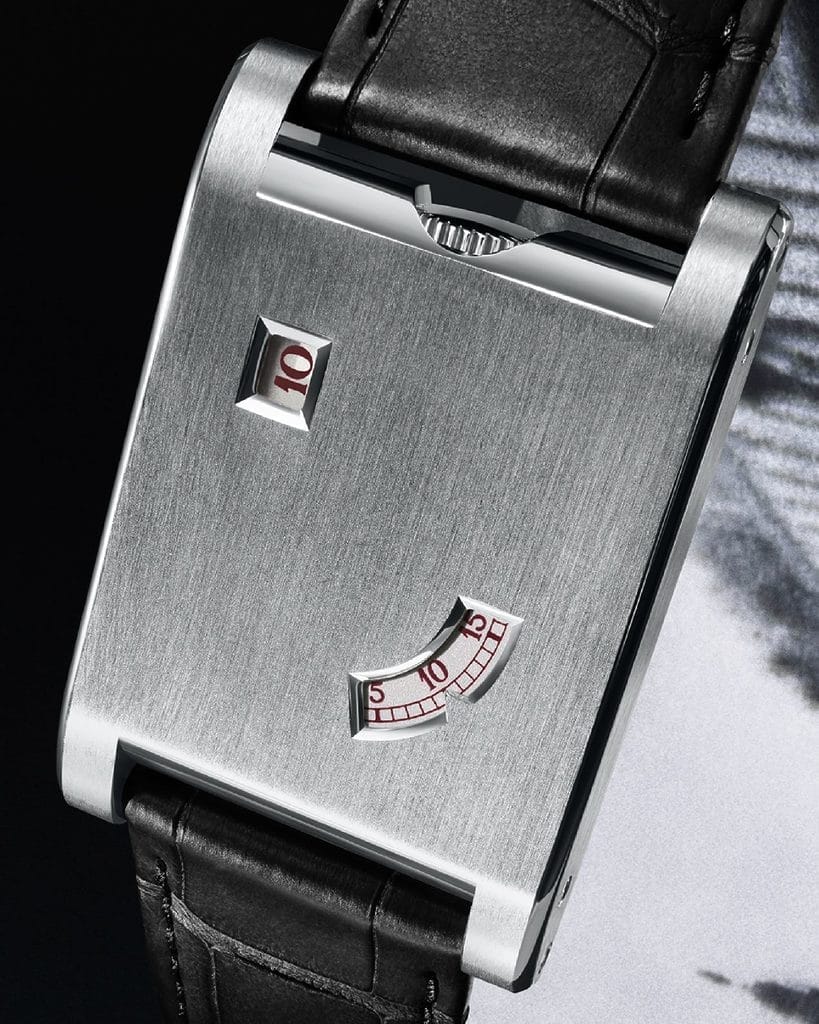 Dans cette nouvelle édition, la Tank à Guichets ne se contente pas d’un hommage. Elle s’impose à nouveau comme un manifeste esthétique et horloger, où la complication mécanique disparaît sous une apparente simplicité.