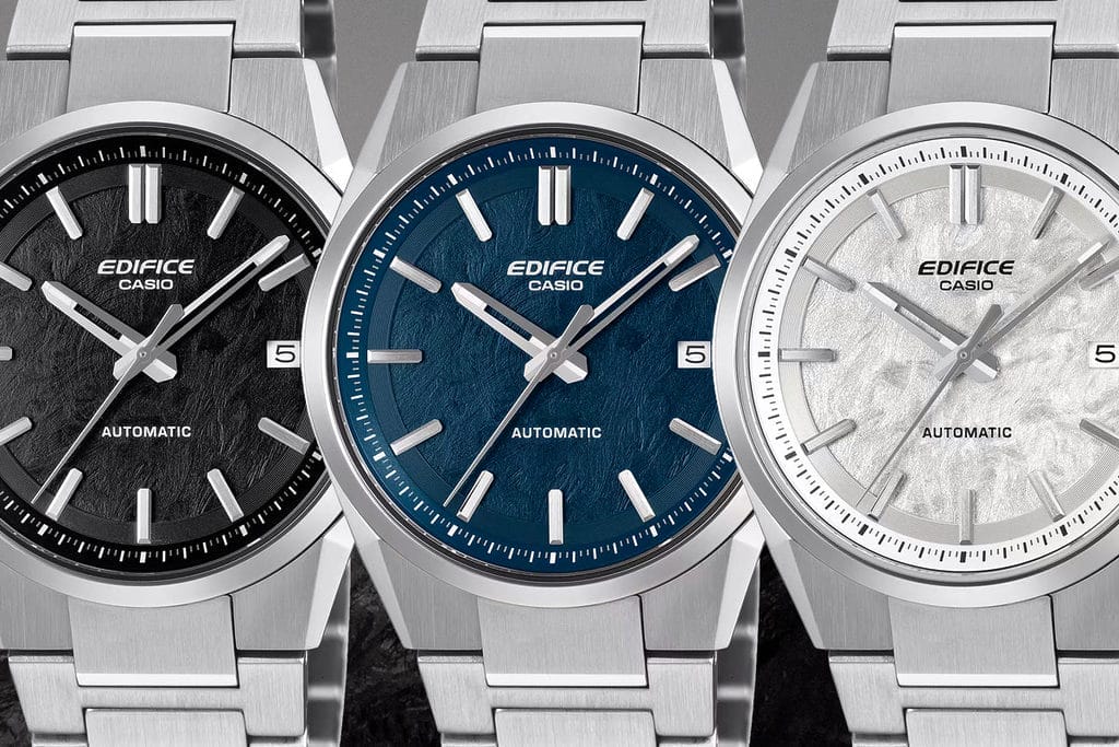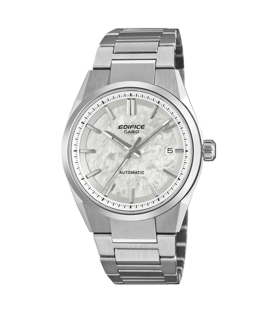 Avec la Casio Edifice EFK-110D, une inflexion intéressante est donnée à la ligne EDIFICE. Là où la collection a longtemps été associée à une lecture très automobile, très instrumentale, une montre plus horlogère, plus épurée et plus facile à porter au quotidien est ici proposée. Boîtier acier de 38 mm, affichage trois aiguilles avec date à 3 heures, verre saphir, fond transparent et étanchéité à 10 bar : la fiche technique a été pensée pour rassurer, mais surtout pour donner de la consistance à une offre mécanique affichée à 279 euros. Trois versions sont annoncées, avec cadrans noir, bleu ou blanc.