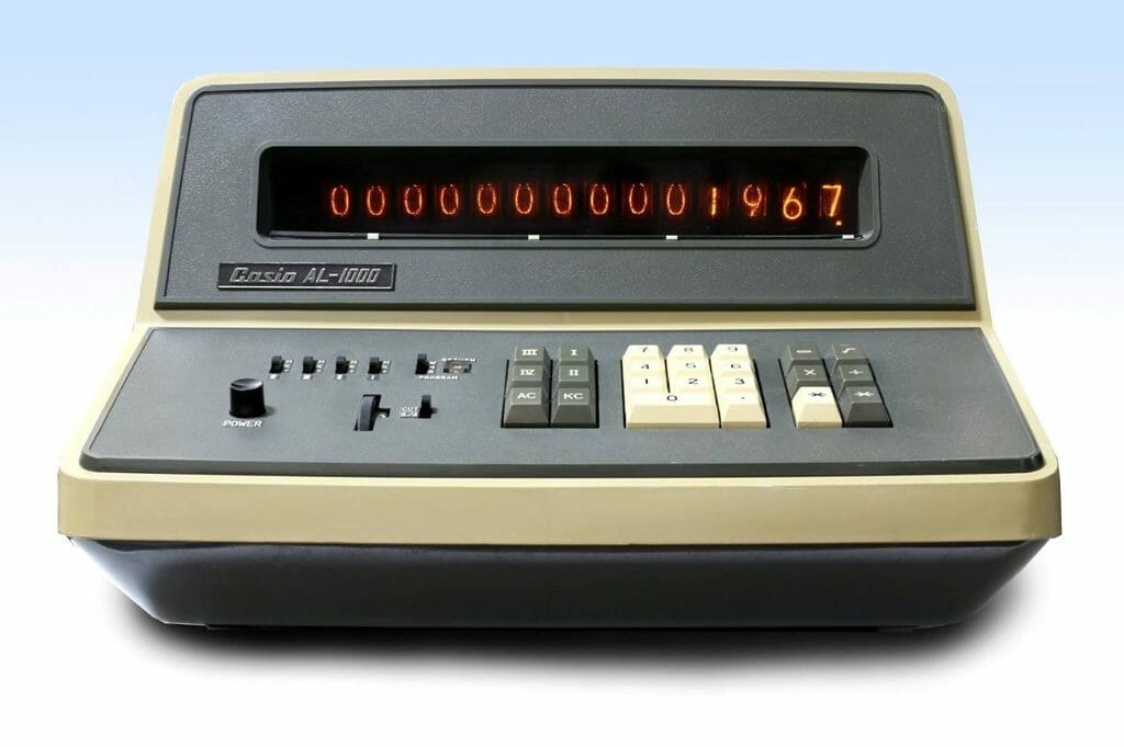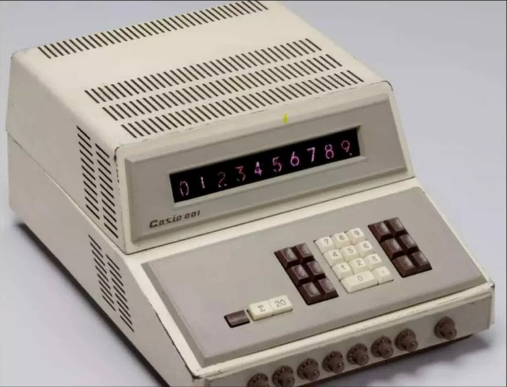 En 1957, deux autres frères étoffent l’équipe et tous créent une nouvelle compagnie, la Kashio Keisanki, plus connue sous le nom Casio Computer Co. Ltd. L’entreprise commercialise cette même année la 14-A, la première calculatrice entièrement électrique fonctionnant à l’aide d’électroaimants. La machine dite compacte pèse cependant 140 kg.