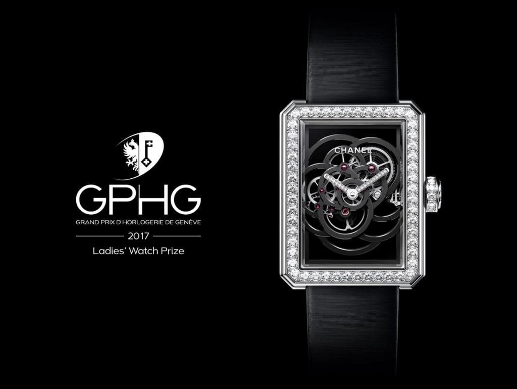 CHANEL a été récompensé, pour la 4ème fois, lors de la cérémonie du Grand Prix d’Horlogerie de Genève (GPHG), pour la montre PREMIERE SQUELETTE CAMELIA CALIBRE 2, dans la catégorie « Dames ».