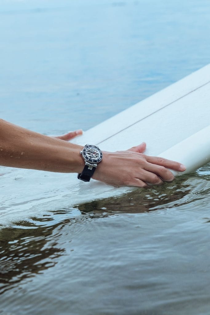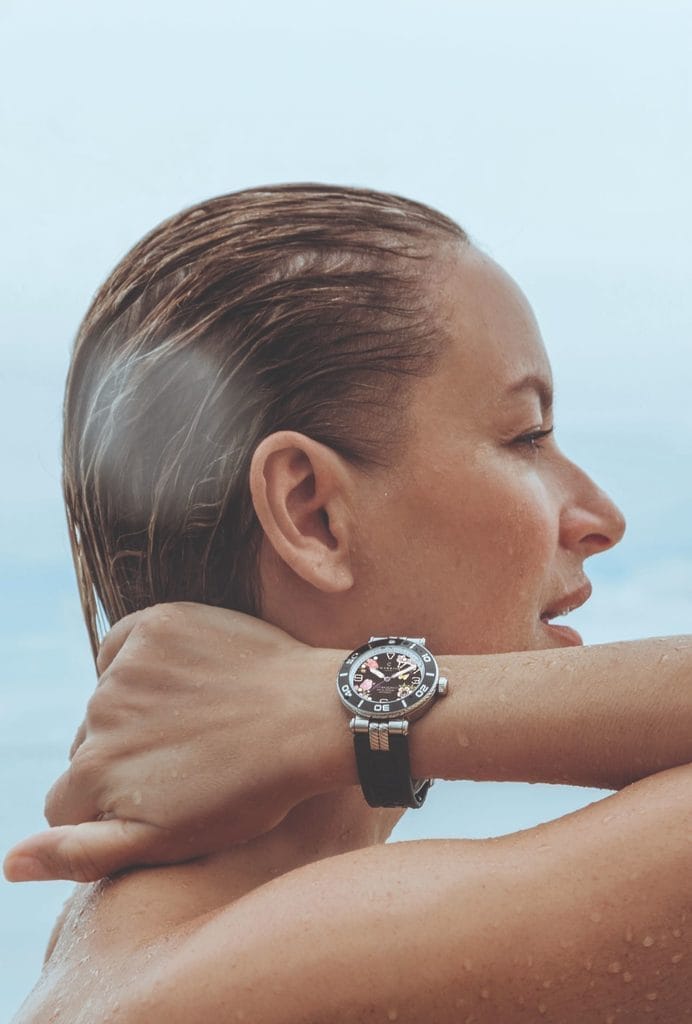 « J’ai rencontré Cynthia l’été dernier lors de la fête du 40e anniversaire de Charriol à East Hampton et j’ai réalisé combien nous avions en commun. J’ai toujours adoré la marque, ainsi que sa collection Surf & Swim, et j’ai pensé qu’il serait amusant d’intégrer certains des imprimés iconiques de ses planches de surf au cadran de la montre Surf Navigator « , dit Coralie Charriol. « J’ai proposé à Cynthia l’idée d’une collaboration sur une montre de surf parce que je sais que son lien avec l’océan et le surf est aussi fort que le mien, et nous sommes toutes les deux des femmes qui avons conçu des produits spécifiquement pour ce sport « .
