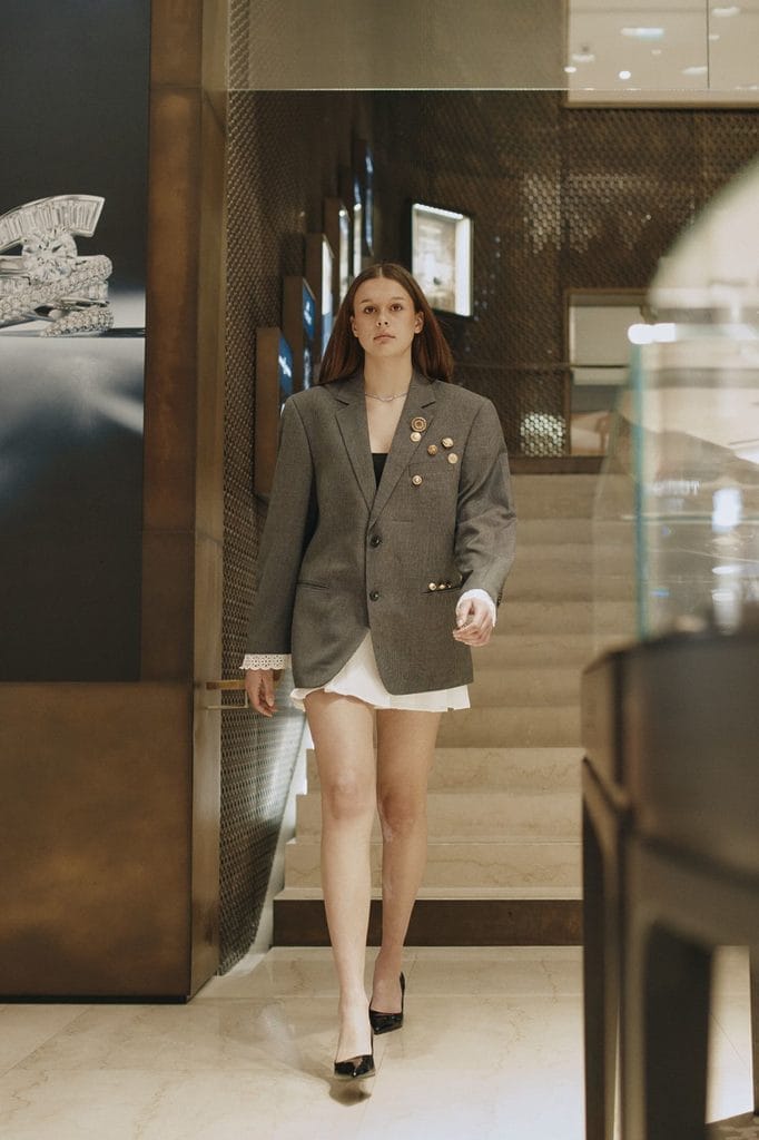 C’est aussi ce qui rend cette initiative particulièrement remarquable. Elle ne s’est pas contentée de produire de belles images. Elle a montré une compréhension réelle des codes du luxe contemporain, où tout repose sur la cohérence de l’expérience. Le lieu, le rythme, la scénographie, jusqu’au choix de la musique, le casting, la circulation, le rapport aux objets déjà présents dans l’espace, la manière de faire dialoguer les créations avec un univers horloger et joaillier : tout témoignait d’une pensée d’ensemble.
