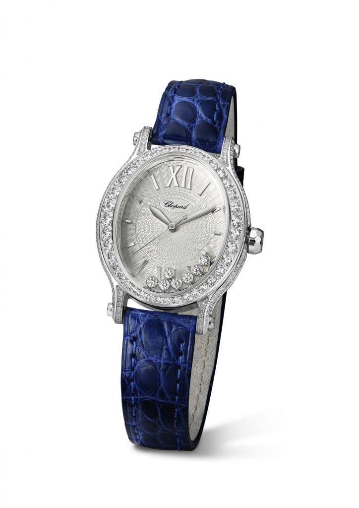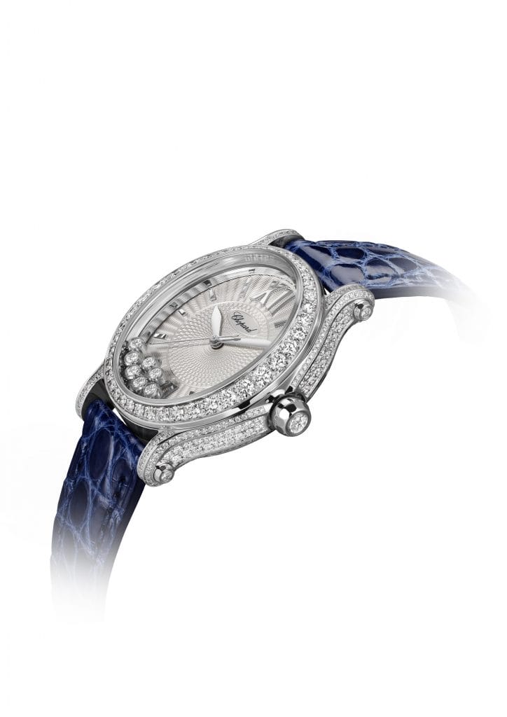 Née il y a 25 ans avec une certaine idée de la modernité et de la liberté de mouvement, la Happy Sport glisse aujourd’hui son esprit frondeur dans un modèle d’élégance absolue : un boîtier ovale paré de diamants qui abrite en son cœur un mouvement automatique, spécialement développé par la manufacture Chopard.