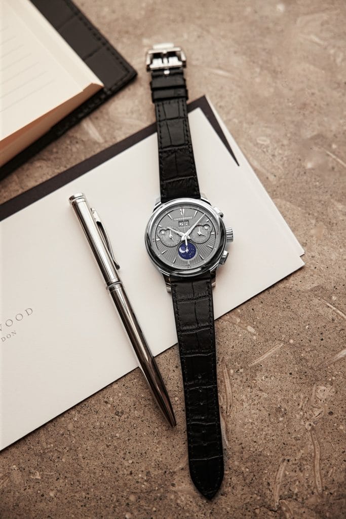 Un bracelet gris en cuir veau nubuck souple renforce encore le sentiment d’une montre à grande complication discrète et adaptée à tous les types de porter, mais aussi tout à fait singulière dans sa finesse et sa beauté.