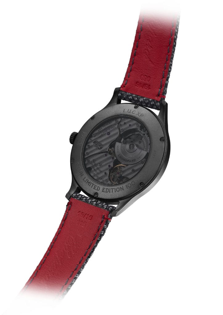 Comme son illustre ascendant, le mouvement mécanique à remontage automatique L.U.C 96.53-L est pourvu de deux barillets, grâce à la technologie Chopard Twin permettant une réserve de marche de 58 heures. Il prend vie grâce à un micro-rotor en tungstène, un alliage à forte densité pour un remontage optimal. Avec ses ponts de mouvement finement décorés de « Côtes de Genève », la montre L.U.C XP Il Sarto Kiton est assurément aussi belle au-dedans qu’au dehors, c’est pourquoi son précieux calibre est visible à travers un fond ouvert.