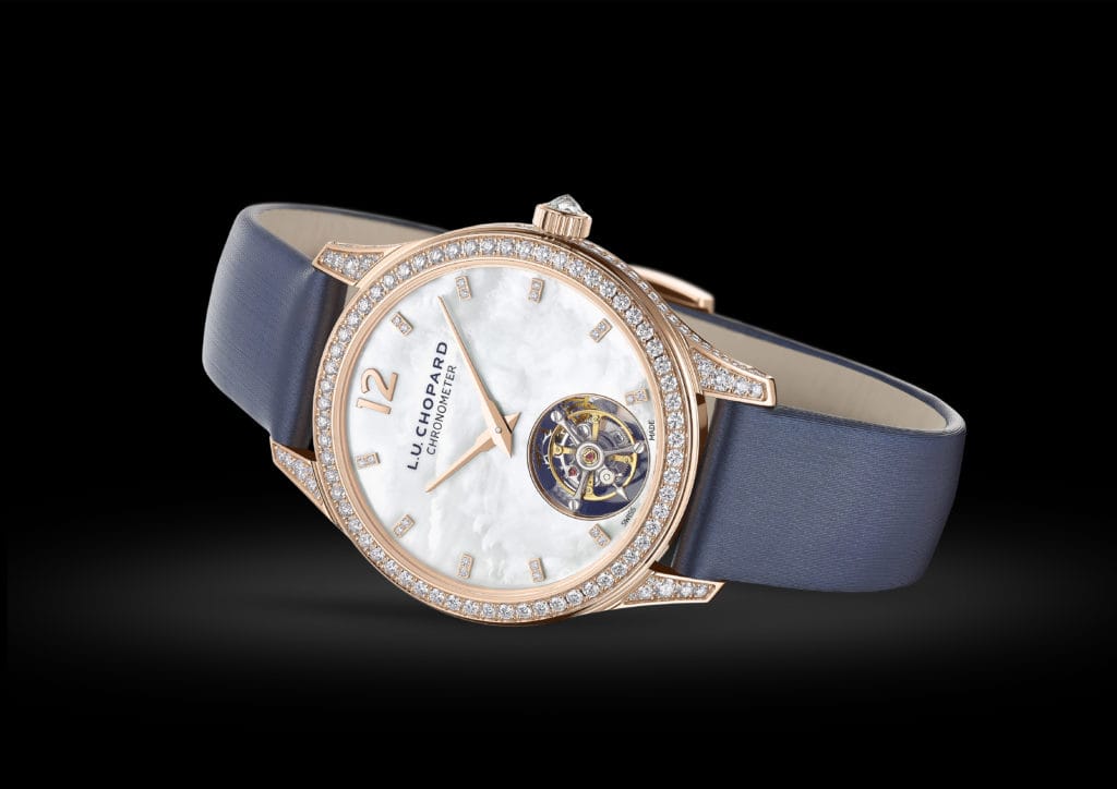 Le mouvement L.U.C 96.24-L est certifié chronomètre et dispose d’une fonction stop seconde, rarissime sur un tourbillon, qui permet une mise à l’heure précise. Témoin de leur bienfacture, les modèles L.U.C Flying T Twin Ladies sont également certifiés par le prestigieux Poinçon de Genève.