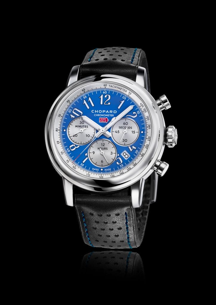 Rosso Corsa, Speed Silver, British Racing Green, Vintage Blue et Speed Yellow, ces couleurs étaient attribuées aux différentes nations de l’automobile. Pour célébrer le 30ème anniversaire du partenariat liant Chopard et la Mille Miglia, la Maison propose une nouvelle collection faite de cinq montres, les Mille Miglia Racing Colours, réédition d’une collection historique de Chopard aux cadrans uniques et destinée aux gentlemen drivers collectionneurs. Elles rendent hommage à l’âge d’or du sport automobile et à une course exclusive, la Mille Miglia, connue pour être la « corsa la più bella del mondo ».
