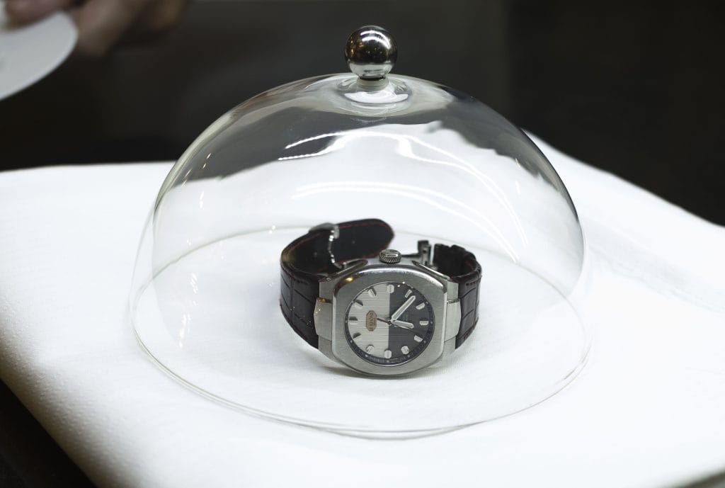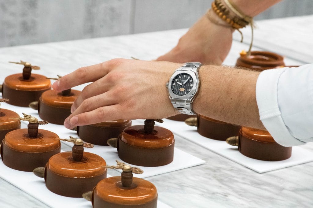 Ils portent désormais à leur poignet une Hedonia automatique en acier, cadran gris et bracelet acier pour Amaury et cadran bi-couleur gris et bracelet en cuir bordeaux pour le chef du George V.