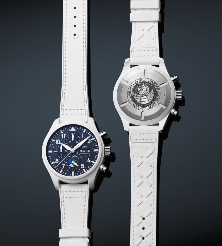 Les montres IWC Pilot’s Watch Chronograph, en édition limitée à quatre exemplaires, ont été portées par les membres de l’équipage Polaris Dawn, dirigé par Jared Isaacman. La mission, qui a atteint une altitude record de 1 400 kilomètres, a marqué une étape majeure dans l’exploration spatiale civile. Chaque montre est unique, avec :