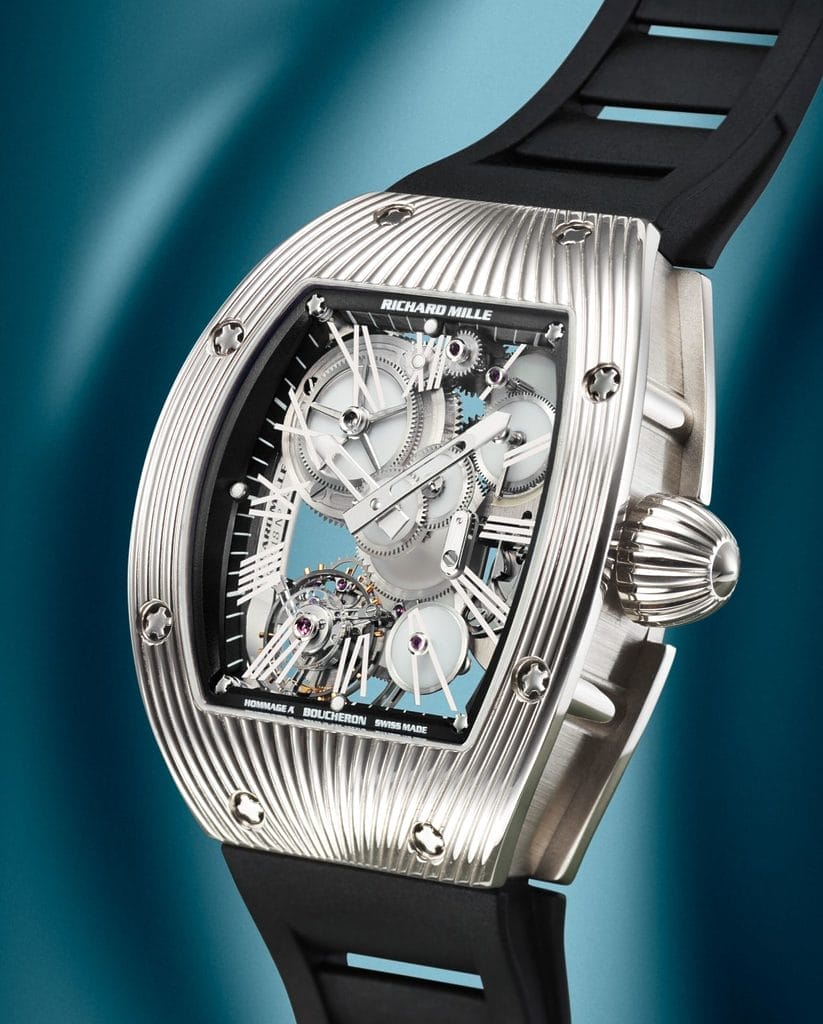 Autre pièce phare, la Richard Mille RM 018 Tourbillon « Hommage à Boucheron », qui mêle haute joaillerie et horlogerie avec son mouvement squeletté et ses roues en agate blanche. Cette création unique célèbre les 150 ans de Boucheron (estimation : 800 000 à 1,5 million USD).