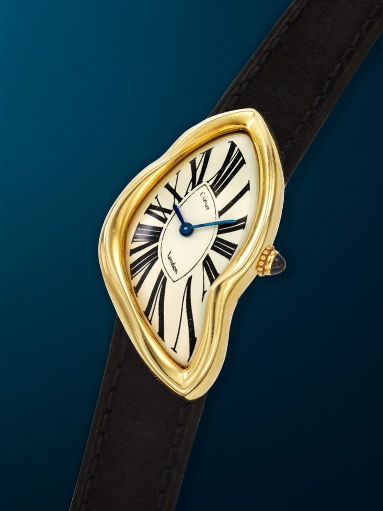 - La Cartier London Crash (1986), emblème d’avant-garde horlogère, est proposée dans un état exceptionnel (estimation : 400 000 à 800 000 USD).