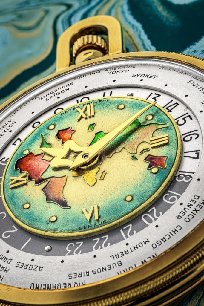 C’est un chef-d’œuvre d’horlogerie alliant un mouvement d’une grande ingéniosité mécanique à un design d’une esthétique exceptionnelle, en excellent état et d’une extrême rareté, qui sera proposé lors de la vente aux enchères Live Christie’s à Hong Kong du 24 mai prochain : la Patek Philippe 605 Heures Universelles, une montre à heure universelle en or 18 carats avec cadran en émail cloisonné polychrome représentant une carte du monde.