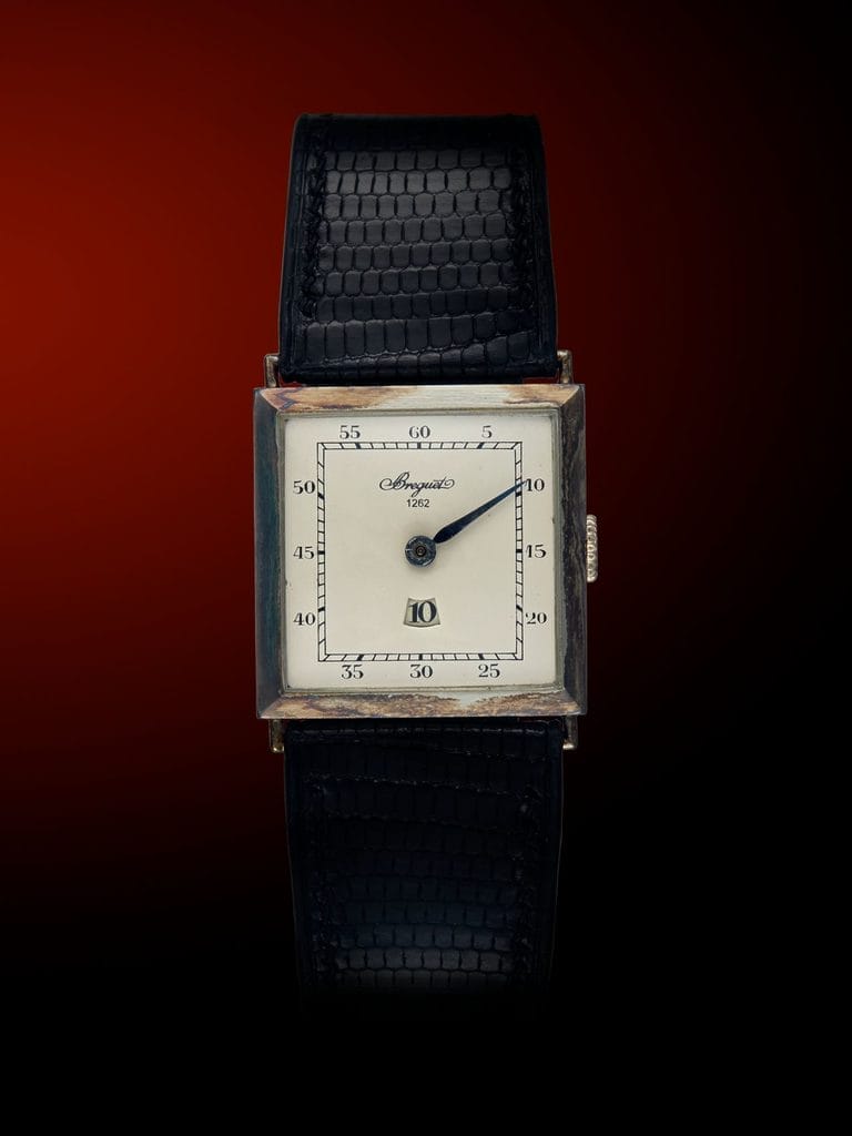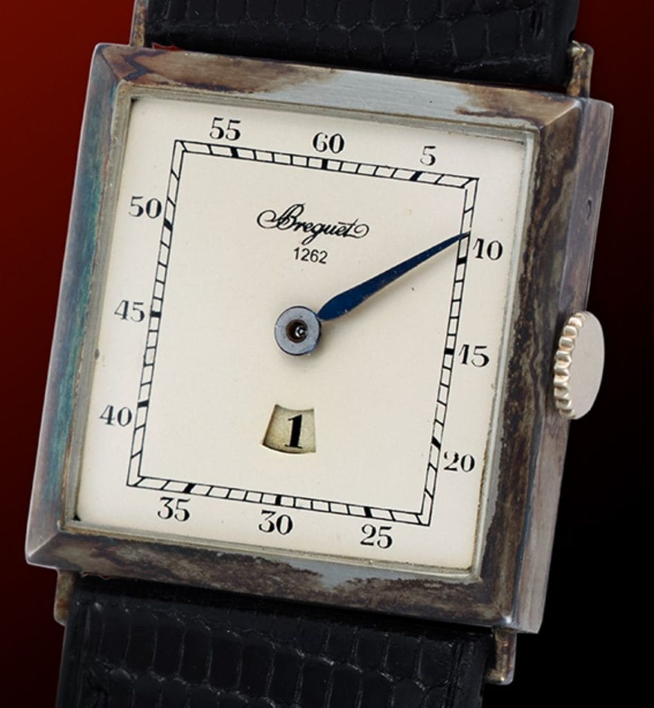 - Breguet 1262 : Une montre Art déco à heure sautante fabriquée en 1926, en alliage Osmior, illustrant l’expertise horlogère de Breguet (estimation : 40 000 – 60 000 USD).