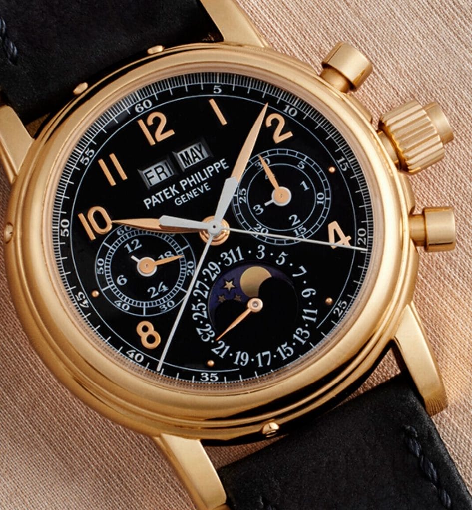 Christie’s propose également des modèles rares de Patek Philippe, célèbres pour leurs complications horlogères :