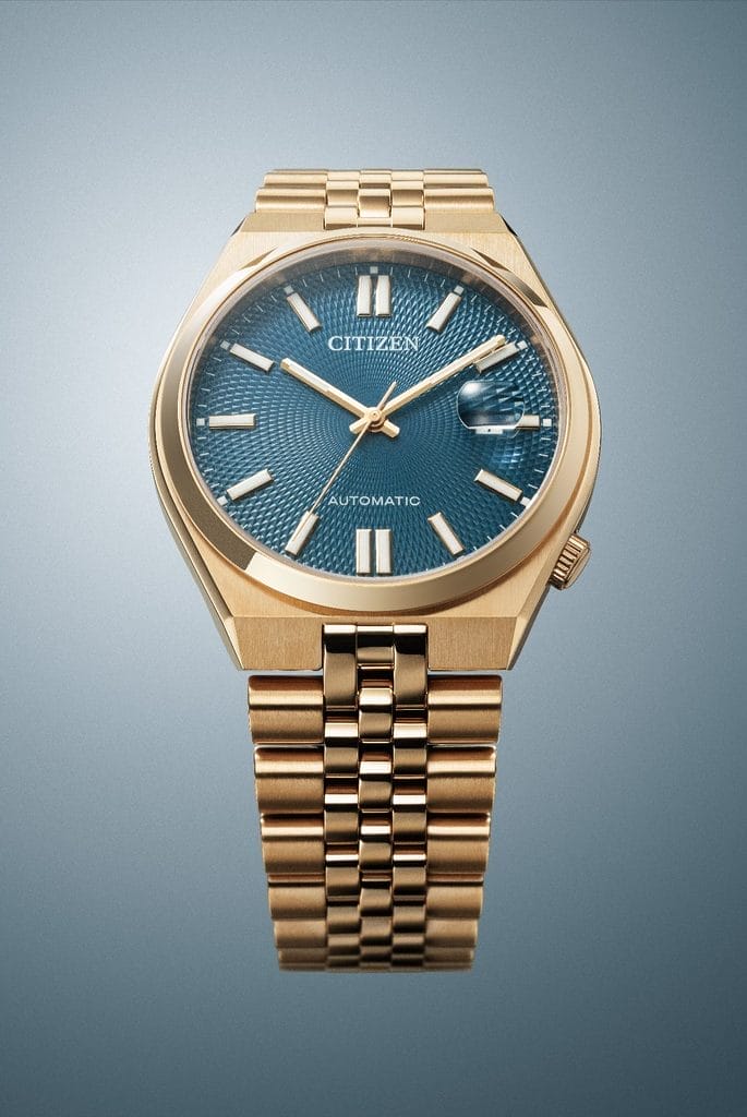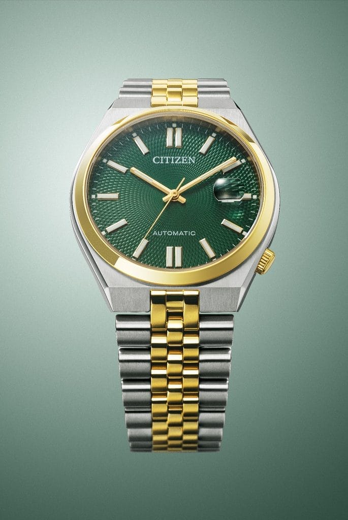 CITIZEN enrichit sa collection TSUYOSA avec trois nouveaux modèles, équipés d’un mouvement offrant une réserve de marche de 60 heures et d’un élégant bracelet à maillons multiples. Les montres TSUYOSA se caractérisent par un design simple et intemporel, rehaussé d’une touche sportive et raffinée. Le nom de la collection, issu du japonais et signifiant « force », reflète la variété de couleurs proposée. Bleu cendré, vert foncé ou noir profond : chacun peut trouver son style parmi ces cadrans ornés de motifs géométriques inspirés de l’Art Déco, pour un rendu à la fois sophistiqué et polyvalent, adapté à toutes les occasions.