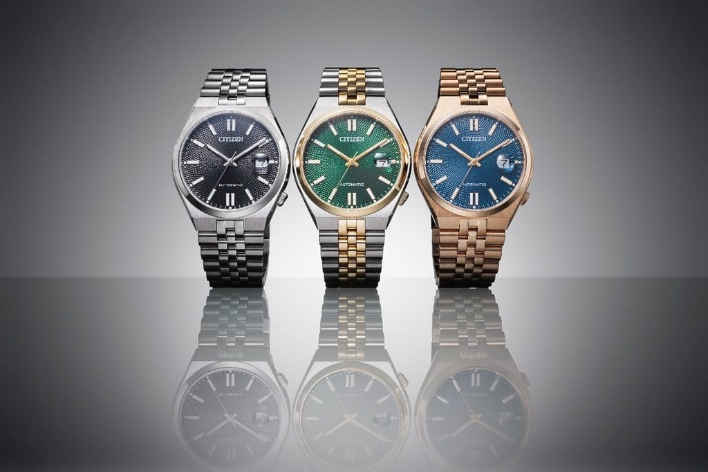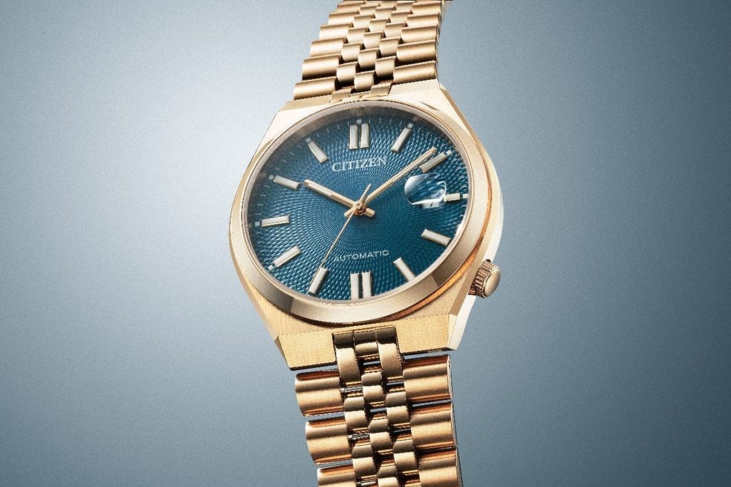 CITIZEN enrichit sa collection TSUYOSA avec trois nouveaux modèles, équipés d’un mouvement offrant une réserve de marche de 60 heures et d’un élégant bracelet à maillons multiples. Les montres TSUYOSA se caractérisent par un design simple et intemporel, rehaussé d’une touche sportive et raffinée. Le nom de la collection, issu du japonais et signifiant « force », reflète la variété de couleurs proposée. Bleu cendré, vert foncé ou noir profond : chacun peut trouver son style parmi ces cadrans ornés de motifs géométriques inspirés de l’Art Déco, pour un rendu à la fois sophistiqué et polyvalent, adapté à toutes les occasions.