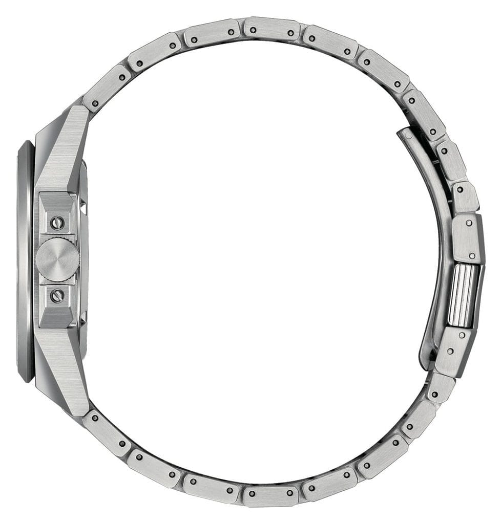 La CITIZEN Series 8 Ice Blue repose sur un boîtier en acier inoxydable de 40 mm de diamètre pour une épaisseur contenue de 11,6 mm. Des proportions idéales qui assurent une présence affirmée sans jamais sacrifier le confort au porté. Le bracelet intégré prolonge naturellement les lignes du boîtier, renforçant cette impression de cohérence et de modernité.