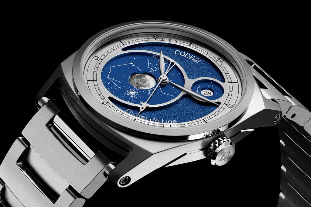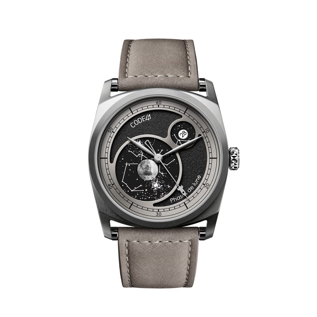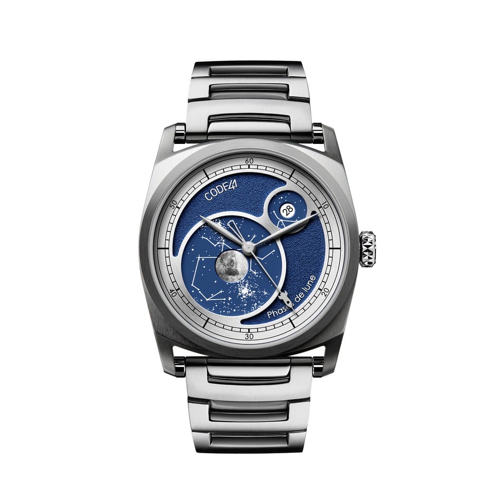 - ● Un mouvement exclusif : Mouvement Phases de Lune C41-MP exclusif à CODE41. Basé sur une architecture Sellita réputée pour sa fiabilité et sa robustesse, il se distingue par un disque de lune grand format retravaillé pour un plus grand réalisme.