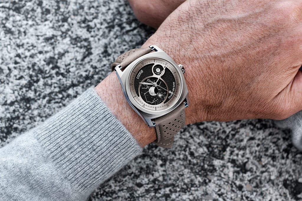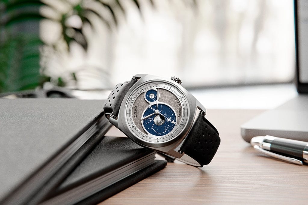 Après avoir célébré le mouvement horloger pendant près de huit ans avec des montres à mécanisme apparent, caractérisées par un squelettage de haute qualité et des ponts sculptés en trois dimensions, devenus une véritable marque esthétique distinctive, CODE41 se lance dans une entreprise sans précédent. La Moon INCEPTION, explorant une dimension nouvelle de l’horlogerie, met en avant le classicisme et la poésie associés aux phases lunaires. Cette complication légendaire, réclamée depuis longtemps, suscite d’ores et déjà un enthousiasme massif au sein de la communauté qui suit depuis le début CODE41.