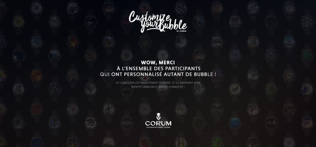 Le « Bubble Contest » était lancé avec pour mot d’ordre « Customize your Bubble ». Aucune limite créative. À chacun d’interpréter ce qu’est l’esprit Bubble pour le proposer sous forme de cadran. À la clé, la possibilité de voir son dessin repris dans la collection Bubble de Corum, et une montre offerte au gagnant.