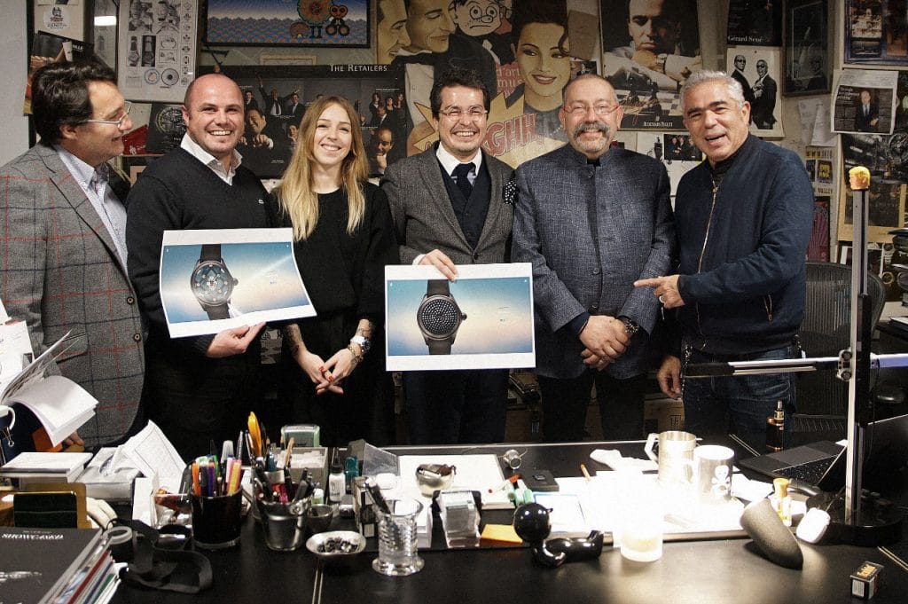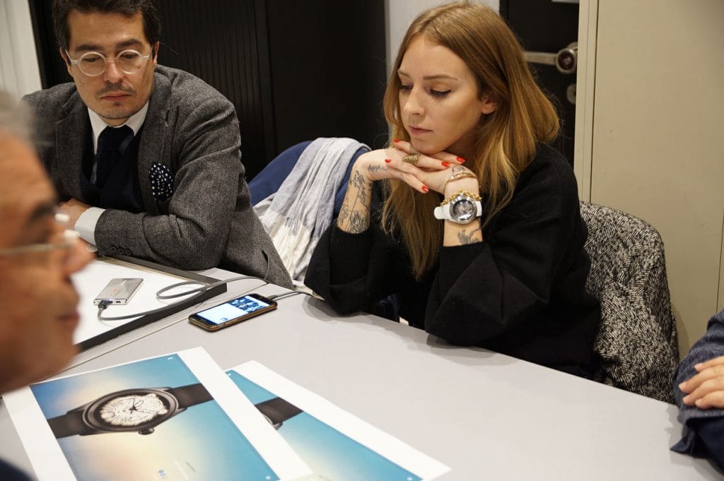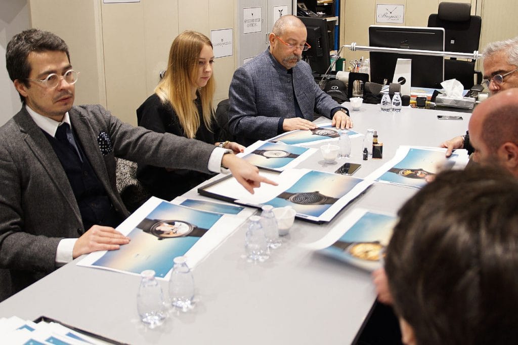 Aucune règle édictée, aucune ligne imposée par la marque ou par qui que ce soit. Il n’était question que de liberté. Liberté de choisir dans un premier temps ce que nous ne voulions pas voir éliminé. Un premier tour de table permettait de sauver ce qui inspirait chacun d’entre nous de l’élimination. La sélection a été rapide, ponctuée de quelques éclats de rire à la vue de certaines propositions. Jamais aucune moquerie, juste la stupéfaction de l’audace de certains participants qui n’hésitaient pas à se mettre en scène de façon burlesque sur leur proposition de cadran. Humoristique et audacieux, mais difficilement imaginable sur une montre iconique.