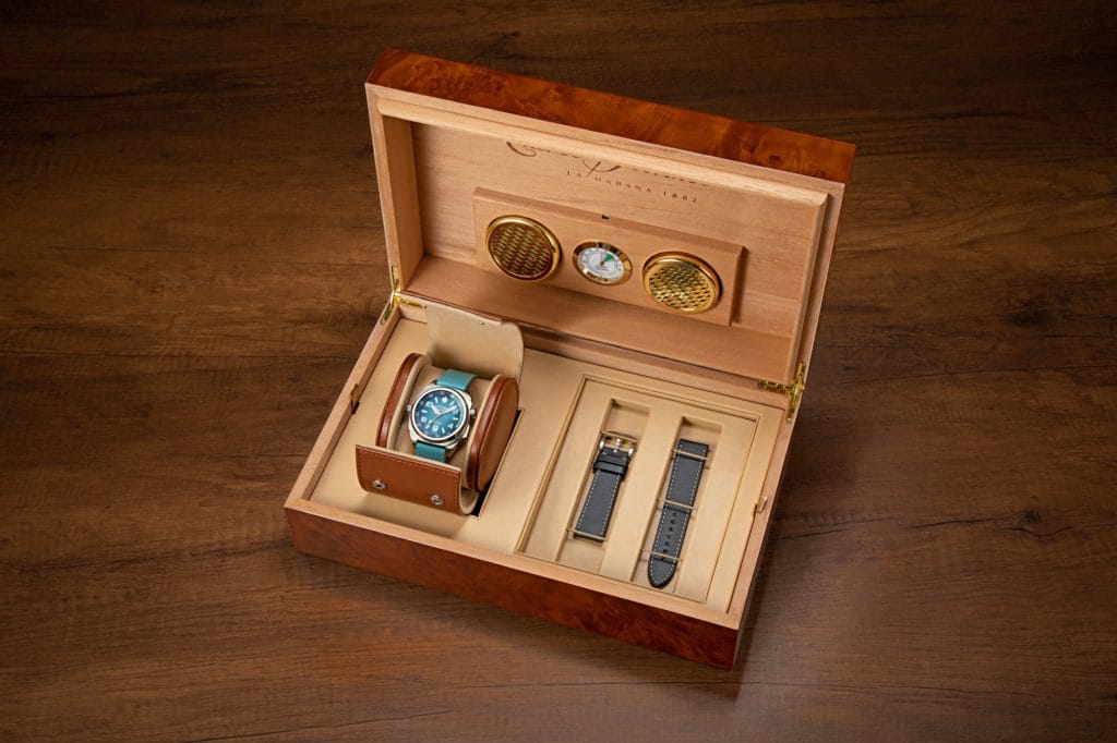 Les acheteurs potentiels peuvent choisir entre trois versions, deux en acier inoxydable et un autre modèle avec traitement DLC noir. Chaque exemplaire de Buceador Caribe évoque les rivages de sable fin, les eaux cristallines et les nombreux coraux de Cuba. Toutes les montres sont fournies avec deux bracelets, l’un en cuir de veau et l’autre en caoutchouc. De plus, la montre est présentée dans une nouvelle cave à cigares en édition spéciale, dotée de sections pour accueillir la montre et jusqu’à deux bracelets supplémentaires.