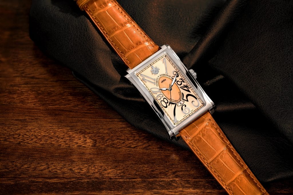 La Prominente Solo Tiempo incarne parfaitement les valeurs de Cuervo y Sobrinos: sobre, élégante, sophistiquée, et intemporelle. Elle existe depuis les débuts de la marque et reste un incontournable pour les amateurs et collectionneurs de montres classiques. La collection Prominente doit son nom à l’un des plus grands cigares cubains, l’équivalent des Melchior, Balthazar ou autre Jeroboam pour les bouteilles.