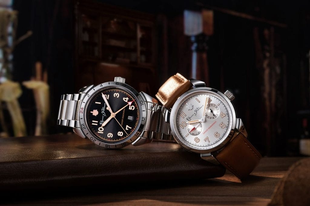 Le modèle bicompax est présenté avec un bracelet en cuir brun coordonné et le modèle GMT avec un bracelet métallique. En outre, les deux montres sont dotées d’un bracelet en cuir noir, ce qui permet aux porteurs de passer d’un look à l’autre sans effort.