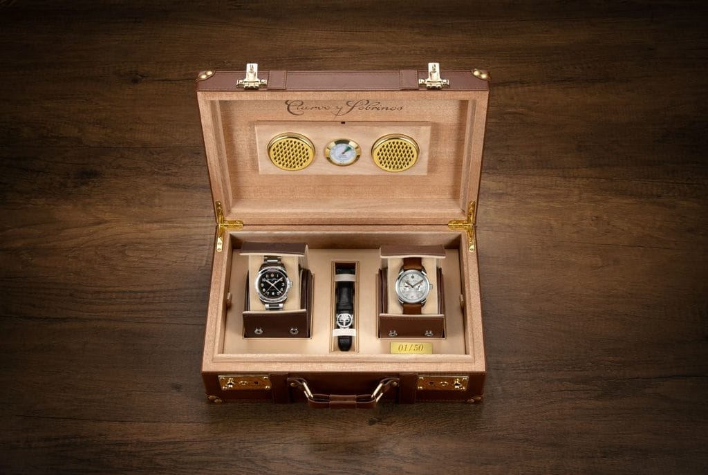 Les deux garde-temps de l’Historiador Hemingway Set seront présentés dans un emballage exquis, spécialement conçu par Cuervo y Sobrinos. Dans le cadre de cette offre, la société a conçu un coffret de voyage limité comprenant d’élégantes boîtes de montres en cuir, garantissant que chaque montre sera conservée avec style.