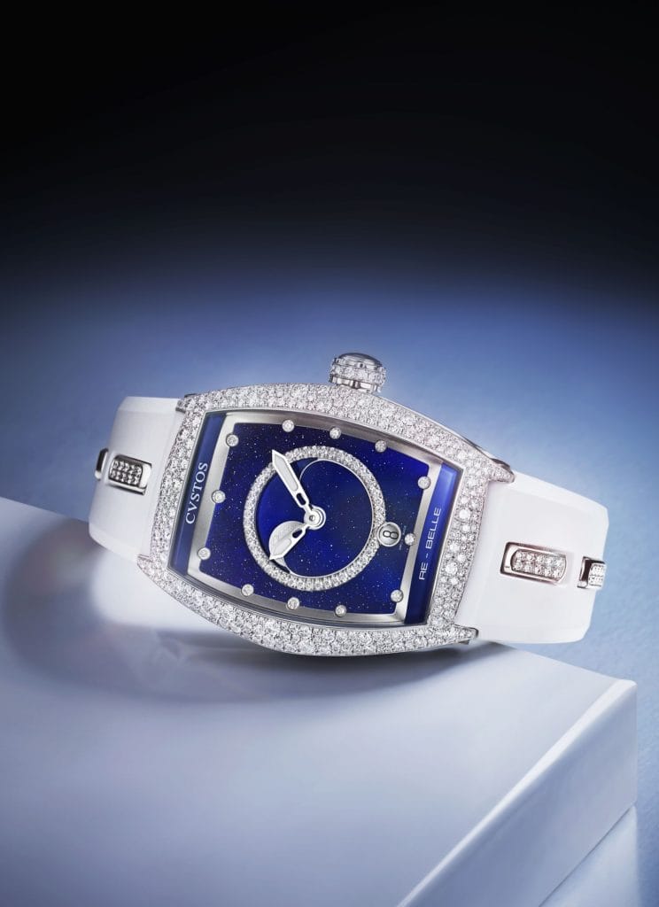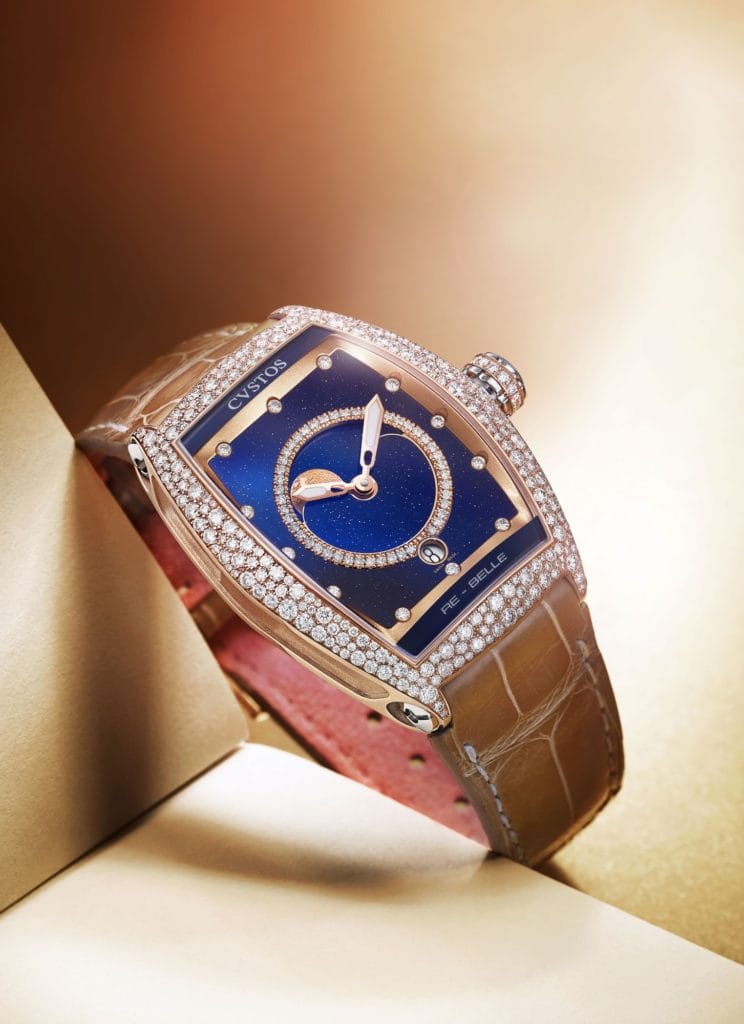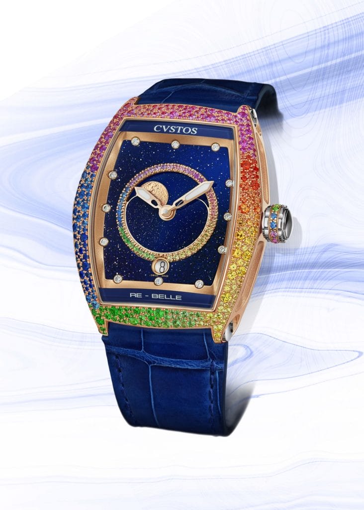 Reflet d’un art horloger signé CVSTOS, la collection Re-Belle est une dédicace à la femme. Cette ligne, au caractère affirmé, allie le charme féminin à la technicité et dévoile sa dernière création : la Re-Belle Moon, une montre-bijou en édition limitée, qui prête un visage poétique au temps qui passe.