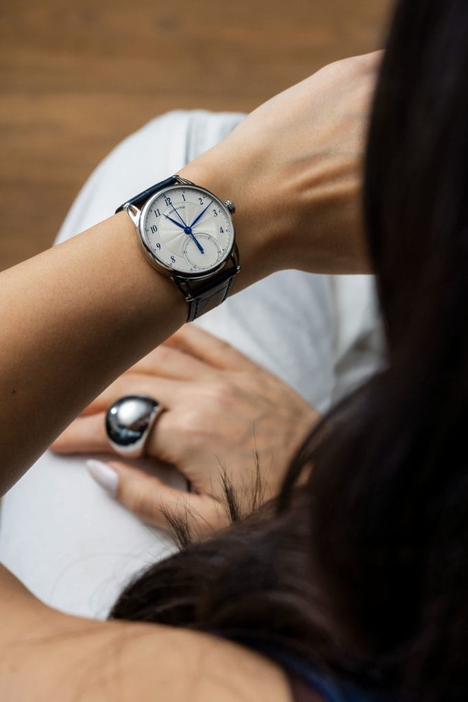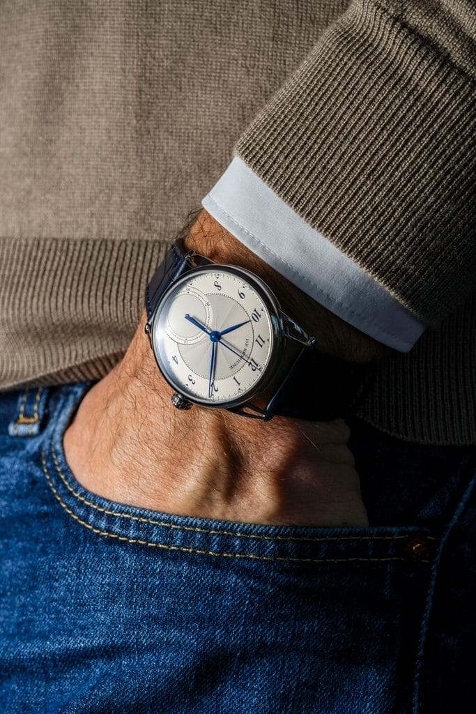 Cette nouvelle pièce s’inspire du raffinement des années 1920-1930 tout en rendant hommage aux grands horlogers du XVIIIe siècle tels que Jean-Antoine Lépine et Julien Leroy. Comme le souligne Denis Flageollet, chaque création naît d’un équilibre entre tradition esthétique et innovation, autour d’un cadran argenté et d’aiguilles bleues.