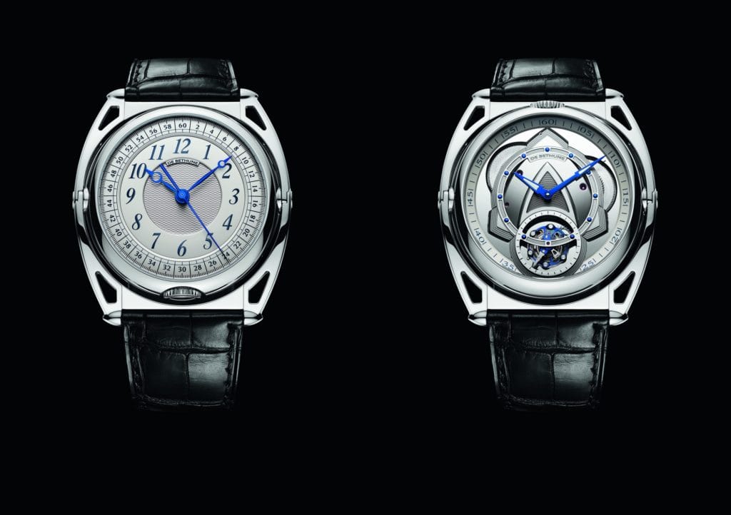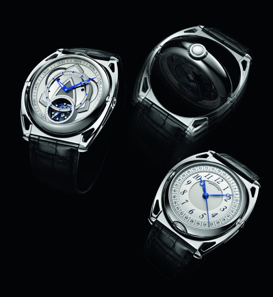 Seconde centrale d’un côté ? La décaler à 6H de l’autre ? Y adjoindre un tourbillon qui serait invisible de l’autre côté ? Design moderne ou plus classique ? L’inspiration de départ a d’abord été de créer une montre à deux identités, bien différentes, dont l’aspect esthétique a guidé la conception technique du nouveau calibre entièrement développé au sein de la manufacture De Bethune à l’Auberson dans le Jura suisse.