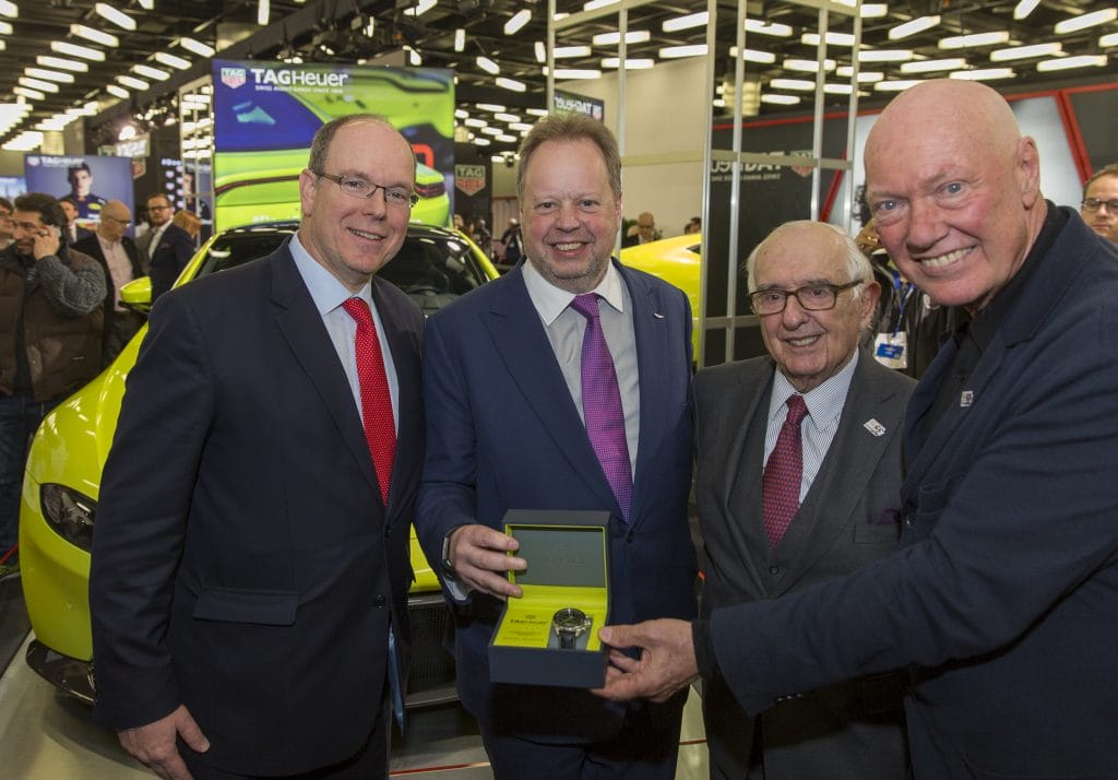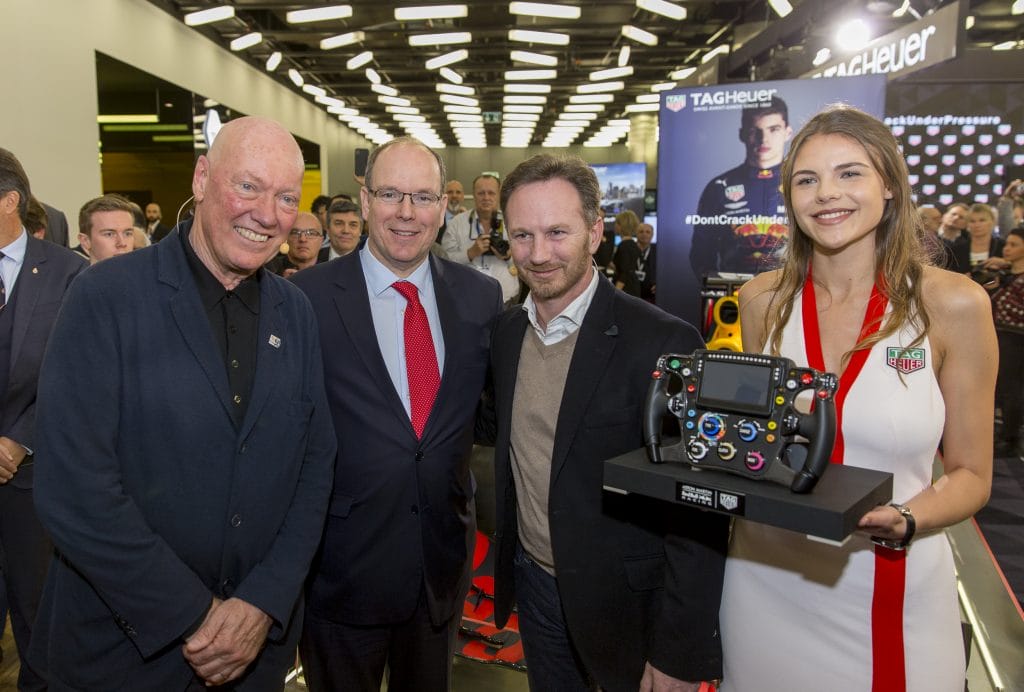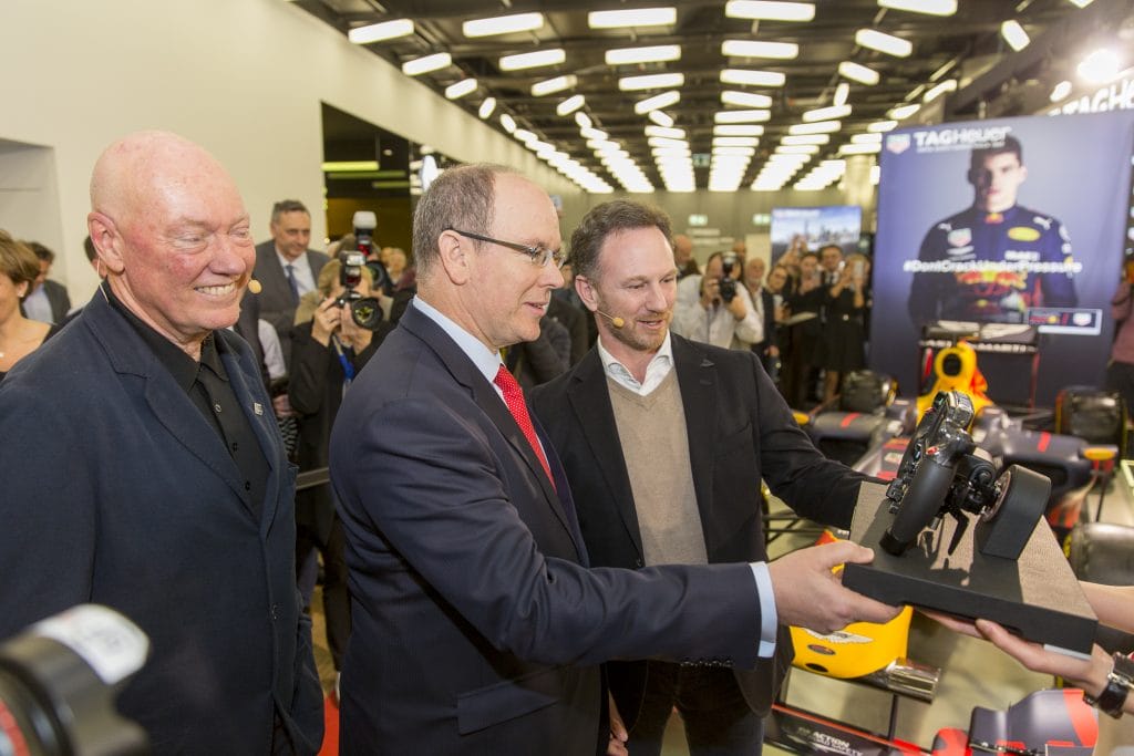 Christian Horner, Team Principal de Aston Martin Red Bull Racing Formula One Team, Alejandro Agag, CEO de ABB Formula E, Andy Palmer, CEO et Président d’Aston Martin, Sanjay Hinduja et Frank Rutten, Président et Vice Président de Gulf Oil International, Philippe Renzini, Directeur du Musée de l’Automobile de Monaco et Jack Heuer, Président Honoraire de TAG Heuer et pionnier du sponsoring automobile, étaient présents pour célébrer, tous ensemble, l’histoire unique de TAG Heuer dans l’univers automobile. Egalement présents exceptionnellement pour l’occasion, SAS Prince Albert II de Monaco !