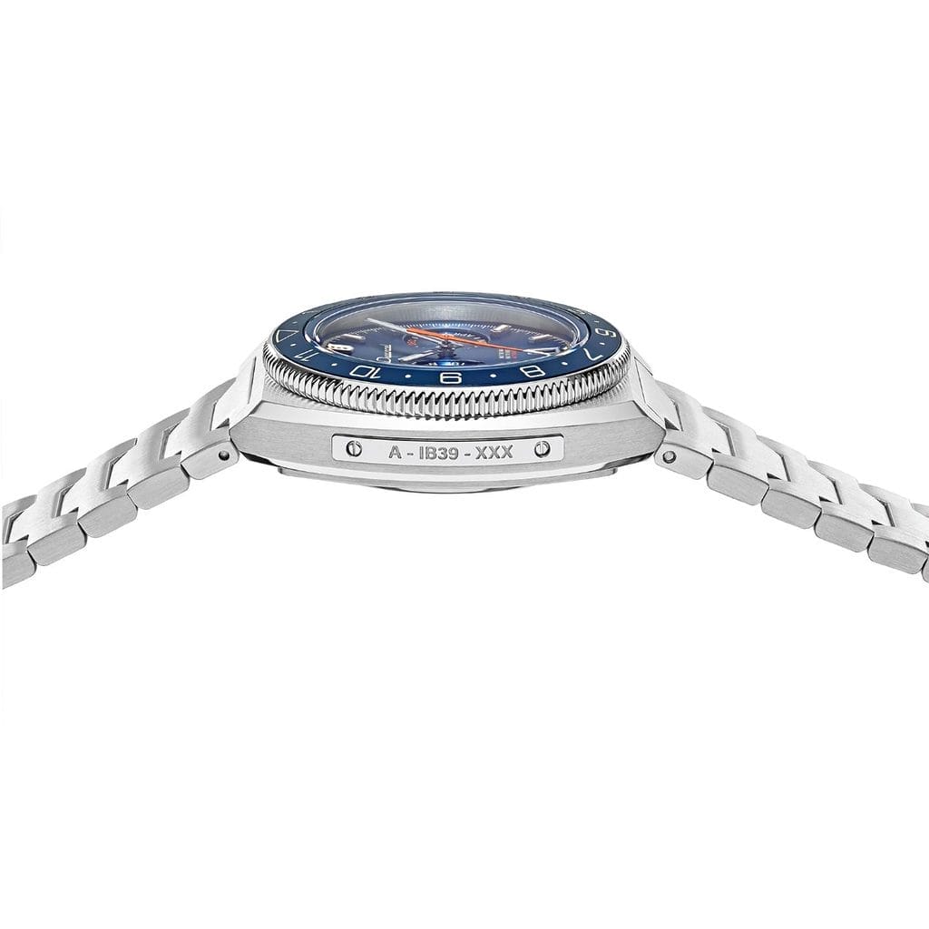 Deux versions sont proposées : un modèle bleu profond et un modèle rouge et noir, inspiré des coques emblématiques des bateaux Cigarette. Un bracelet en caoutchouc vient souligner son caractère sportif.