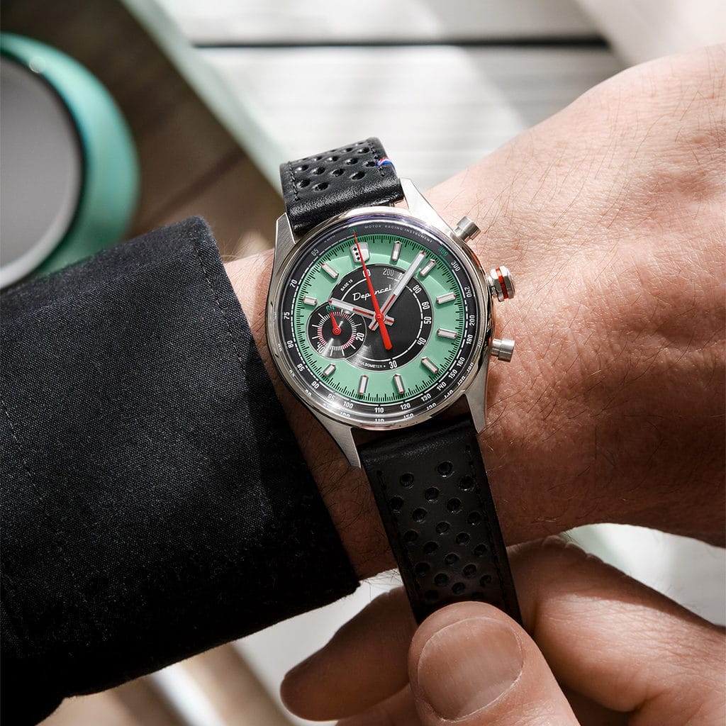 Pensée pour un usage quotidien fiable et simple, cette montre cache sous son cadran original un mouvement Seiko VK63. Ce mécanisme méca-quartz, hybride entre précision du quartz et allure d’un chronographe mécanique, offre une aiguille centrale fluide. L’ensemble marie parfaitement charme rétro et technologie moderne, à destination des amateurs de style, de vitesse et de rigueur. Avec ce modèle, Depancel confirme son ambition de proposer des montres accessibles sans faire de compromis.