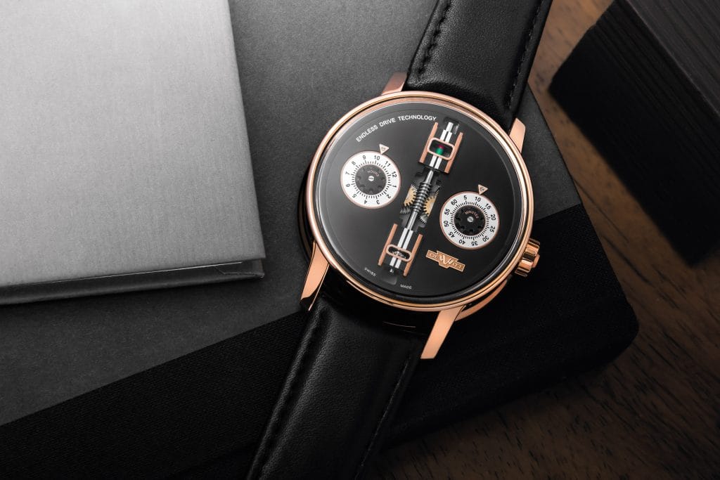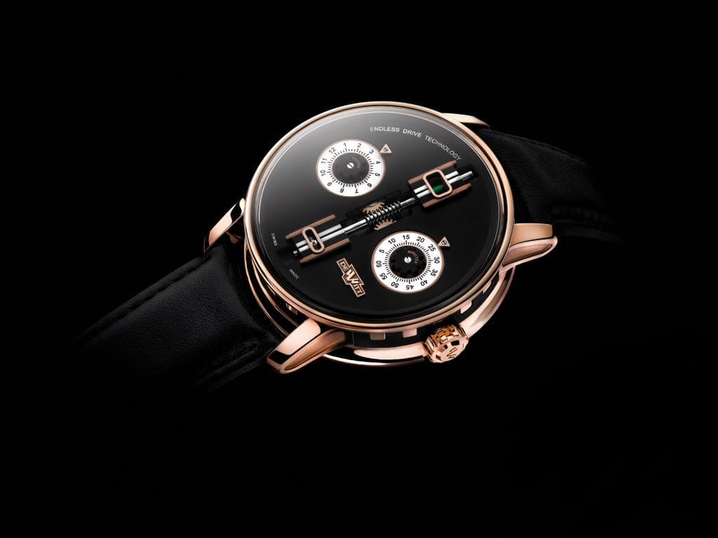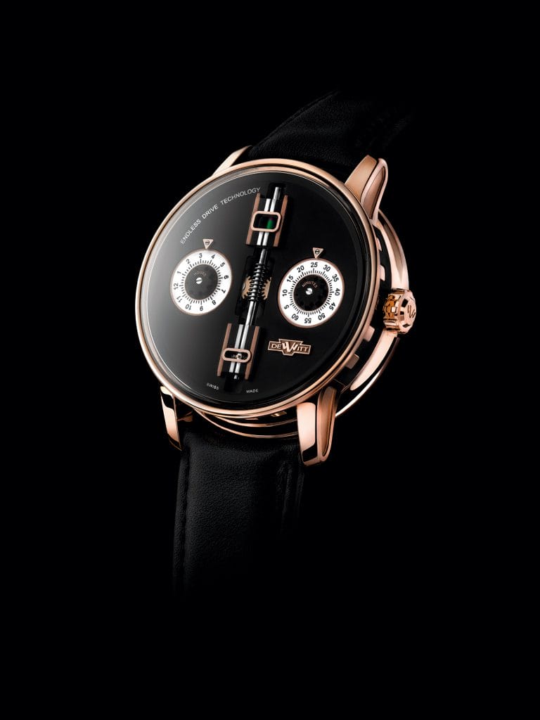 L’Academia Endless Drive dévoile un design original, dans la ligne des créations DeWitt au caractère affirmé et unique, avec une vis sans fin comme pièce maîtresse de son cadran