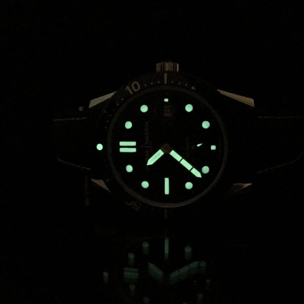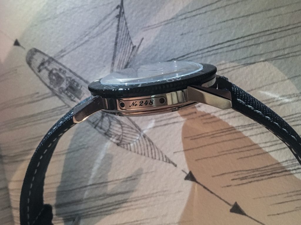 Un dernier détail différencie la Diver Chronometer des autres références aquatiques disponibles sur le marché horloger. Une petite plaque positionnée à 9h sur la carrure du boîtier affiche le numéro de la montre. Les heureux propriétaires possèdent plus qu’une simple montre de plongée. Ils possèdent une série numérotée Ulysse Nardin, gage de qualité.